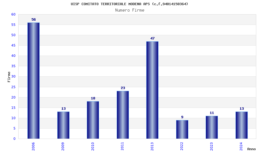 | Anno | Firme | Importi | Media | Naz. | Reg. | Prov. | Comu. |