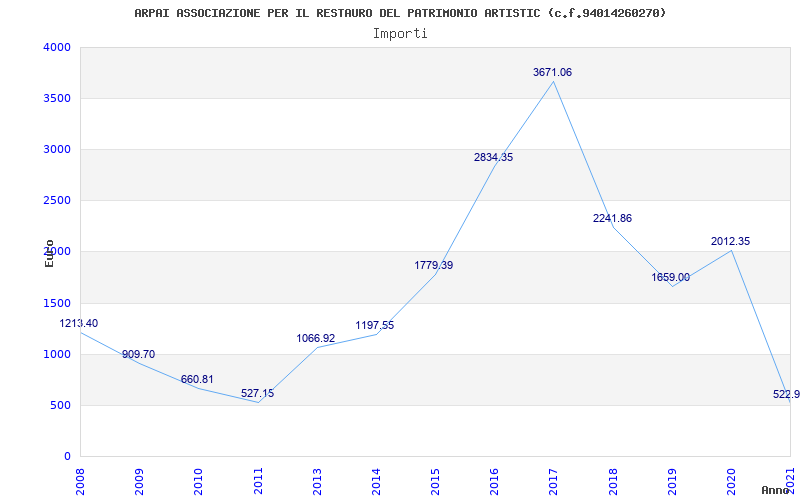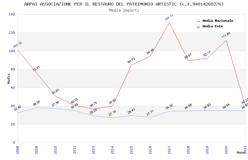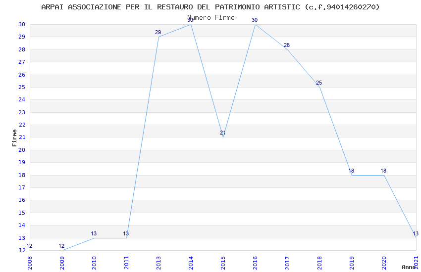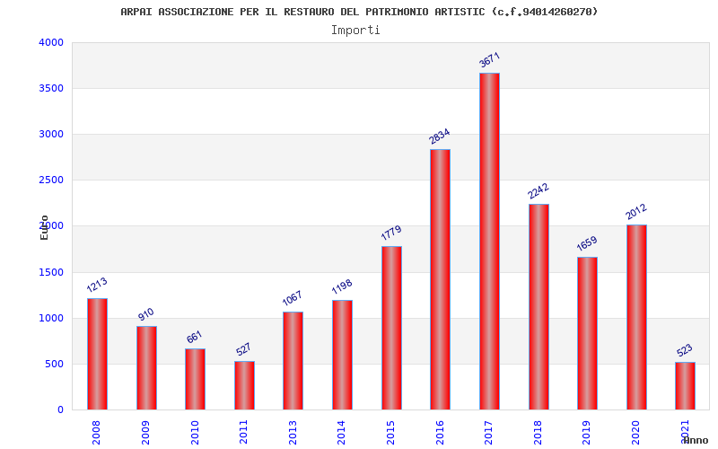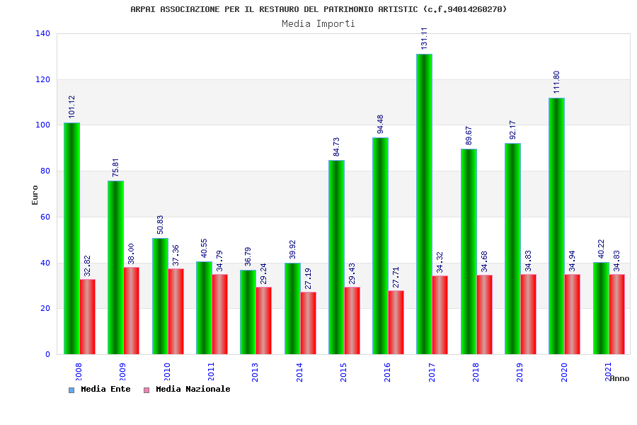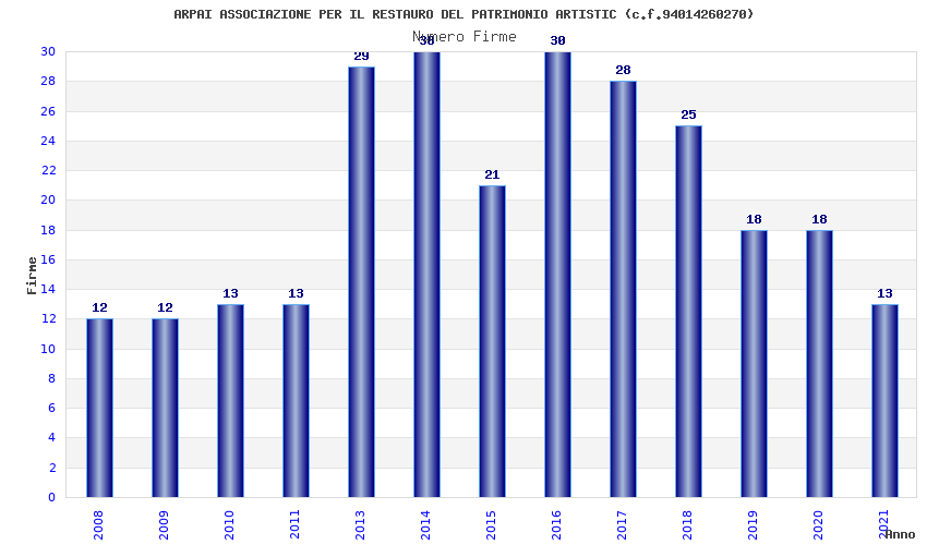 | Anno | Firme | Importi | Media | Naz. | Reg. | Prov. | Comu. |