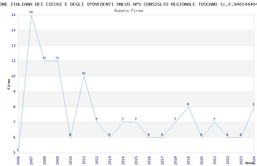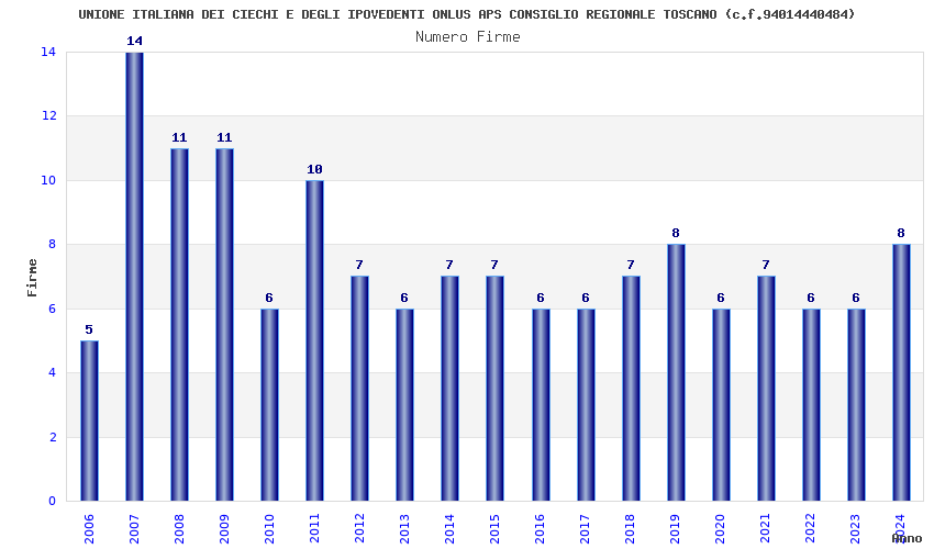 | Anno | Firme | Importi | Media | Naz. | Reg. | Prov. | Comu. |