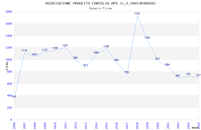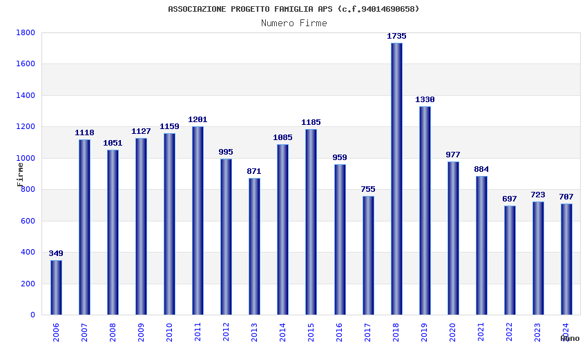 | Anno | Firme | Importi | Media | Naz. | Reg. | Prov. | Comu. |