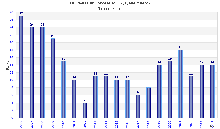 | Anno | Firme | Importi | Media | Naz. | Reg. | Prov. | Comu. |