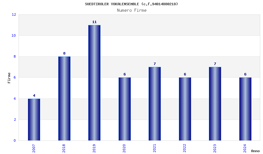 | Anno | Firme | Importi | Media | Naz. | Reg. | Prov. | Comu. |