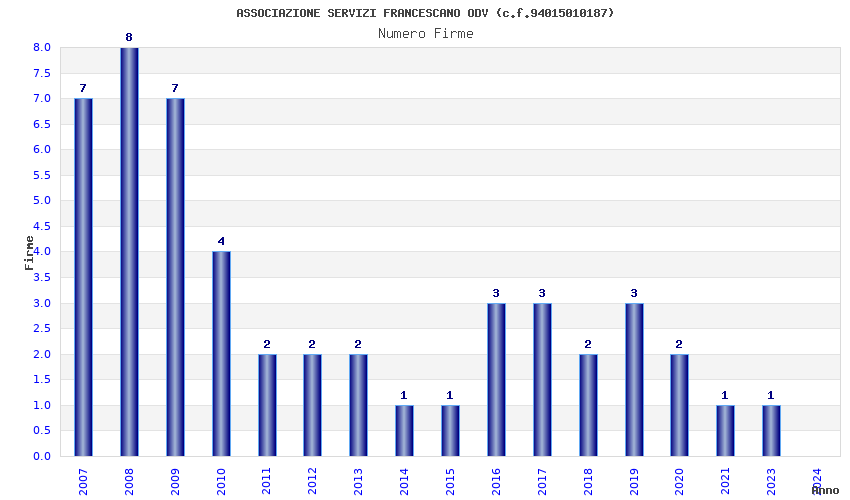 | Anno | Firme | Importi | Media | Naz. | Reg. | Prov. | Comu. |