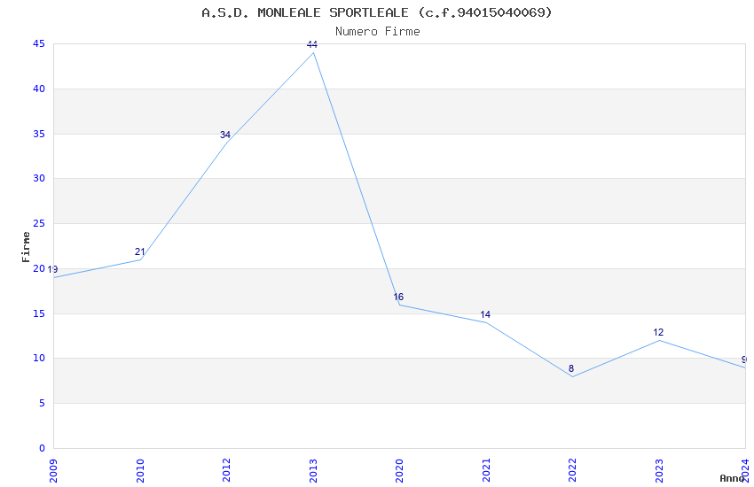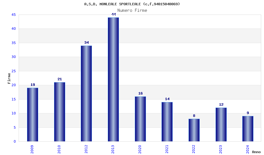 | 2013 | 44 | 1.327,89 | 30,18 | 23.538 | 1.912 | 167 | 1 |