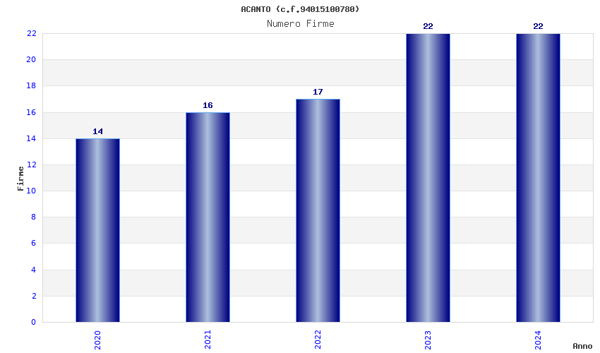 | Anno | Firme | Importi | Media | Naz. | Reg. | Prov. | Comu. |