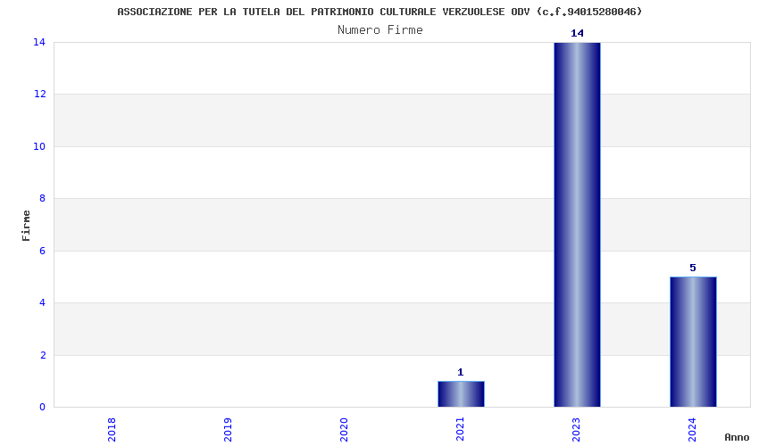 | Anno | Firme | Importi | Media | Naz. | Reg. | Prov. | Comu. |
