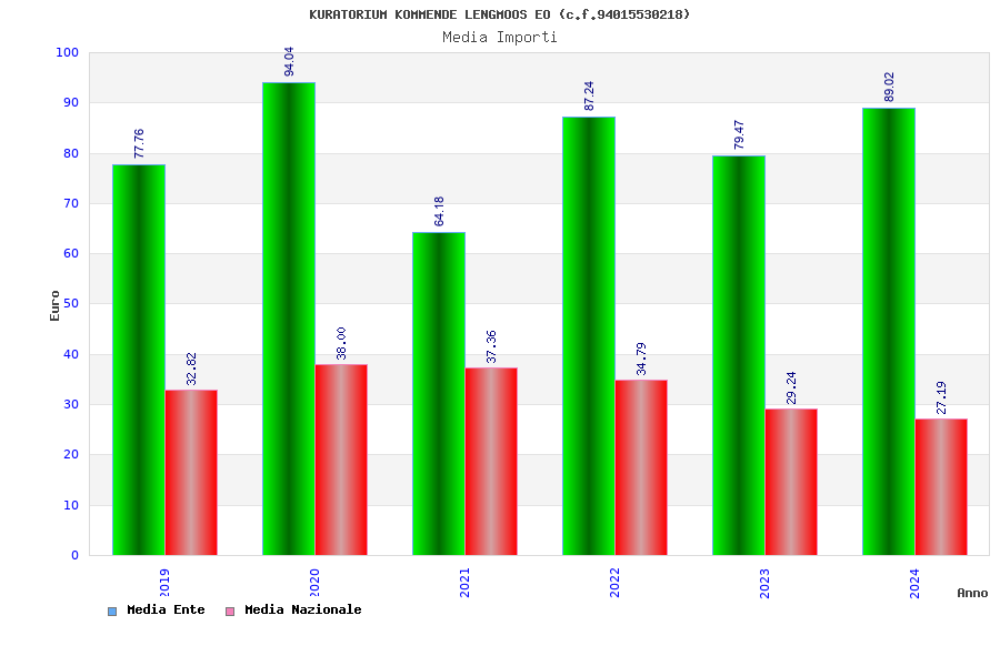 | Anno | Firme | Importi | Media | Naz. | Reg. | Prov. | Comu. |
