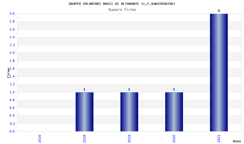 | Anno | Firme | Importi | Media | Naz. | Reg. | Prov. | Comu. |