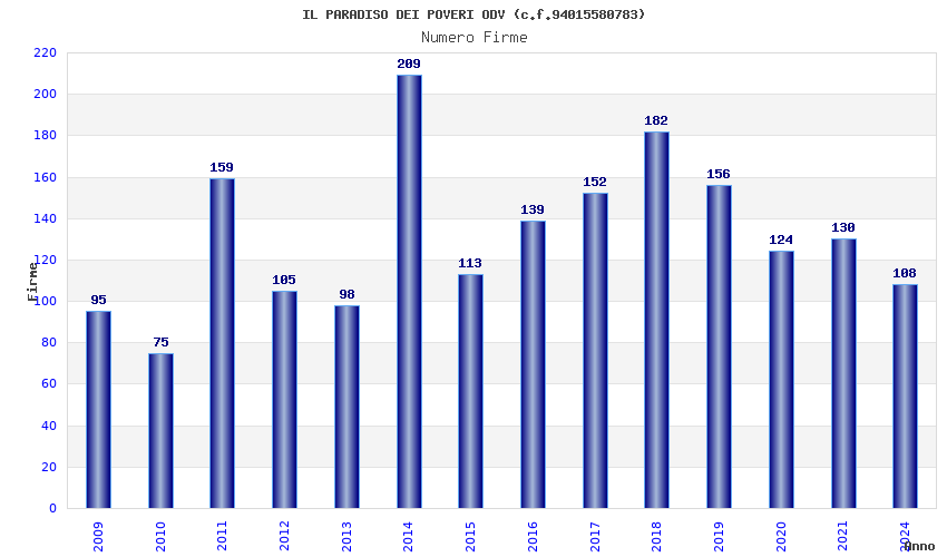 | Anno | Firme | Importi | Media | Naz. | Reg. | Prov. | Comu. |