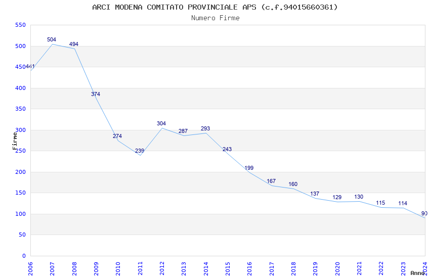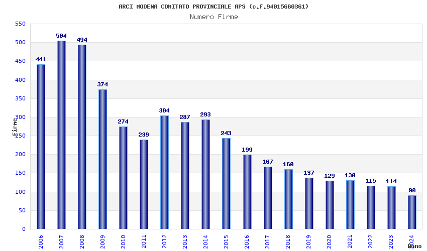 | Anno | Firme | Importi | Media | Naz. | Reg. | Prov. | Comu. |