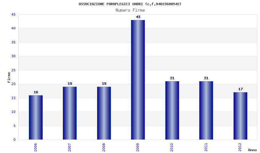 | Anno | Firme | Importi | Media | Naz. | Reg. | Prov. | Comu. |