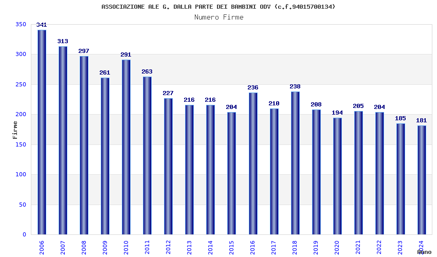 | Anno | Firme | Importi | Media | Naz. | Reg. | Prov. | Comu. |