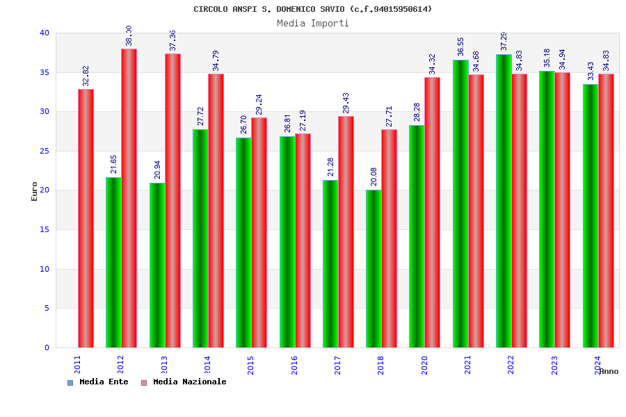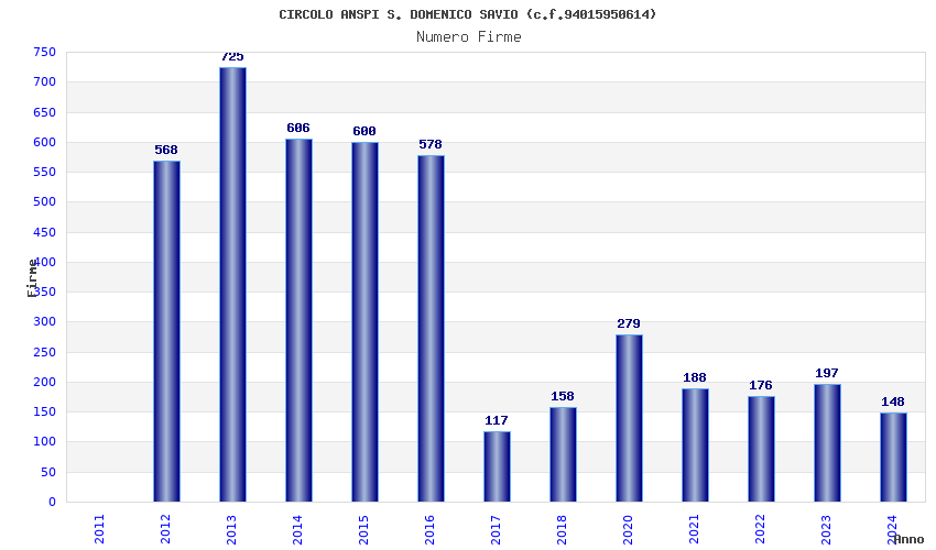 | Anno | Firme | Importi | Media | Naz. | Reg. | Prov. | Comu. |