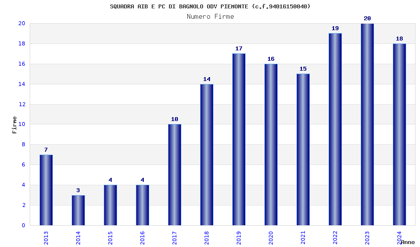 | Anno | Firme | Importi | Media | Naz. | Reg. | Prov. | Comu. |