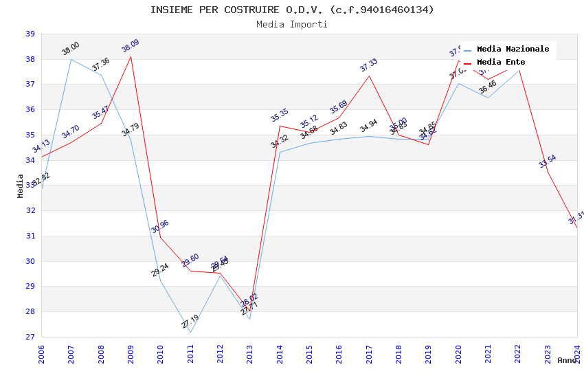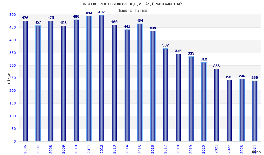 | Anno | Firme | Importi | Media | Naz. | Reg. | Prov. | Comu. |