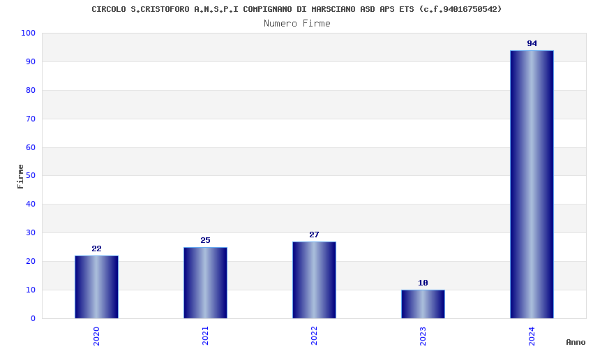 | Anno | Firme | Importi | Media | Naz. | Reg. | Prov. | Comu. |