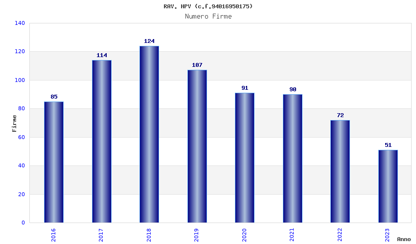 | Anno | Firme | Importi | Media | Naz. | Reg. | Prov. | Comu. |