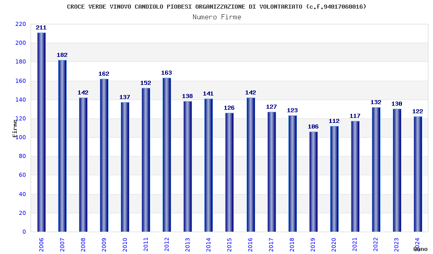 | Anno | Firme | Importi | Media | Naz. | Reg. | Prov. | Comu. |