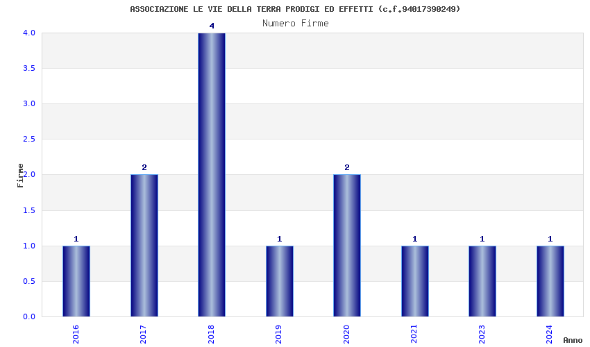 | Anno | Firme | Importi | Media | Naz. | Reg. | Prov. | Comu. |