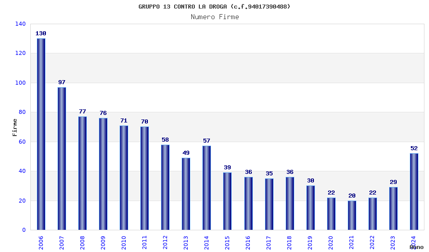| 2006 | 130 | 2.826,58 | 21,74 | 12.464 | 821 | 246 | 123 |