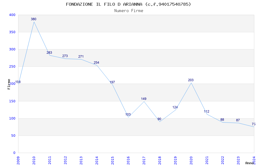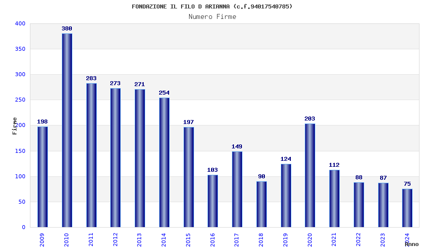| Anno | Firme | Importi | Media | Naz. | Reg. | Prov. | Comu. |