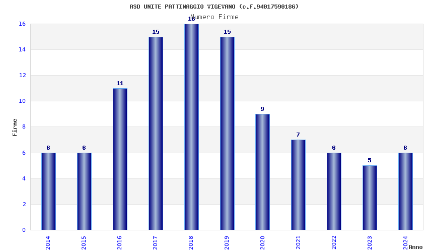 | 2019 | 15 | 431,96 | 28,80 | 47.695 | 9.779 | 534 | 60 |