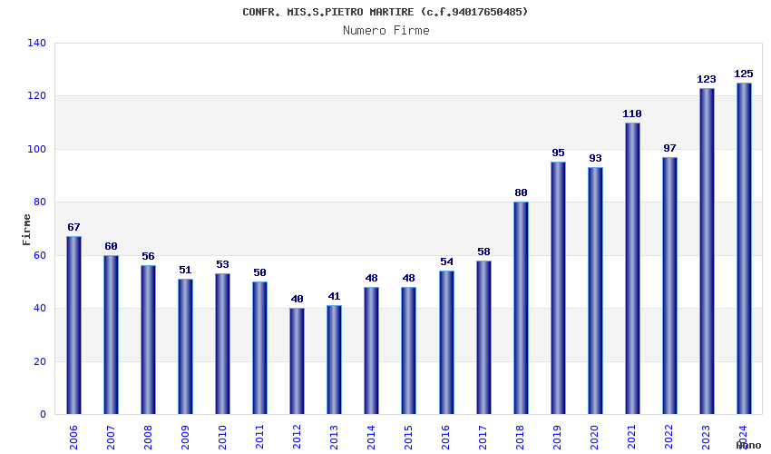 | Anno | Firme | Importi | Media | Naz. | Reg. | Prov. | Comu. |