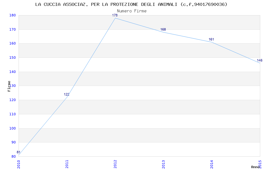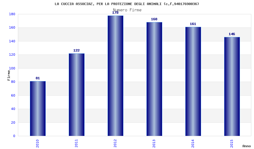 | Anno | Firme | Importi | Media | Naz. | Reg. | Prov. | Comu. |