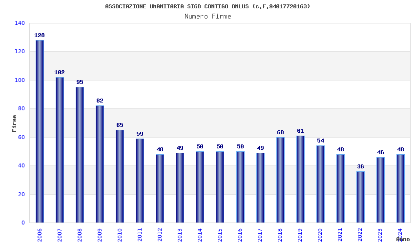 | Anno | Firme | Importi | Media | Naz. | Reg. | Prov. | Comu. |