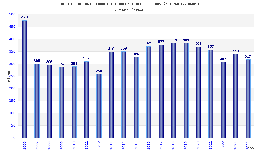 | Anno | Firme | Importi | Media | Naz. | Reg. | Prov. | Comu. |