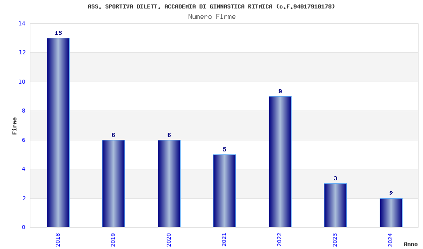 | 2018 | 13 | 375,72 | 28,90 | 48.394 | 9.853 | 1.314 | 12 |