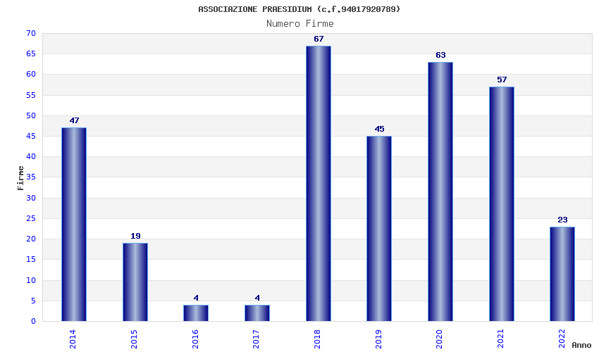 | Anno | Firme | Importi | Media | Naz. | Reg. | Prov. | Comu. |