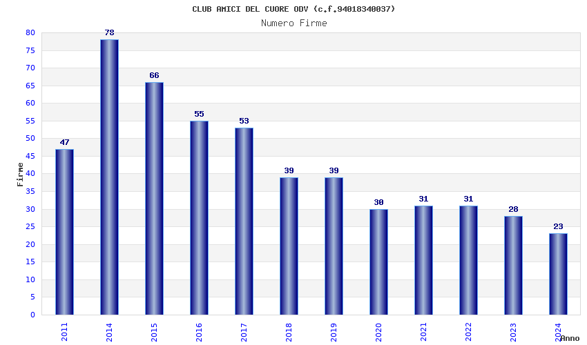 | Anno | Firme | Importi | Media | Naz. | Reg. | Prov. | Comu. |