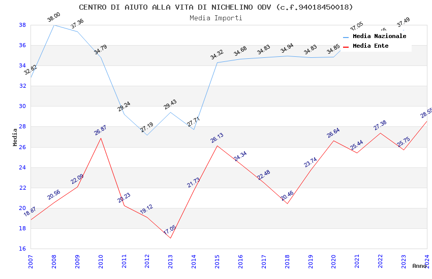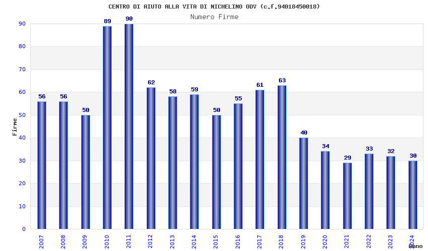 | Anno | Firme | Importi | Media | Naz. | Reg. | Prov. | Comu. |