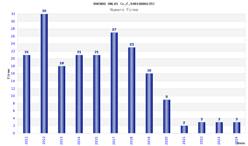 | Anno | Firme | Importi | Media | Naz. | Reg. | Prov. | Comu. |
