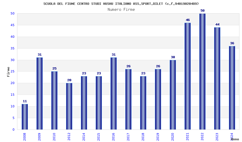| Anno | Firme | Importi | Media | Naz. | Reg. | Prov. | Comu. |