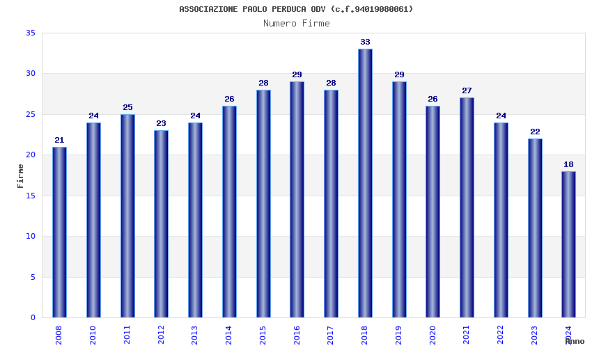 | 2018 | 33 | 1.071,91 | 32,48 | 33.907 | 2.838 | 236 | 14 |