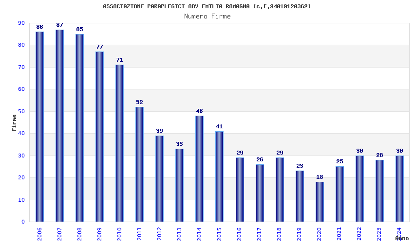 | Anno | Firme | Importi | Media | Naz. | Reg. | Prov. | Comu. |
