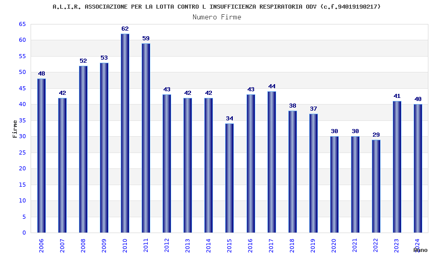 | Anno | Firme | Importi | Media | Naz. | Reg. | Prov. | Comu. |