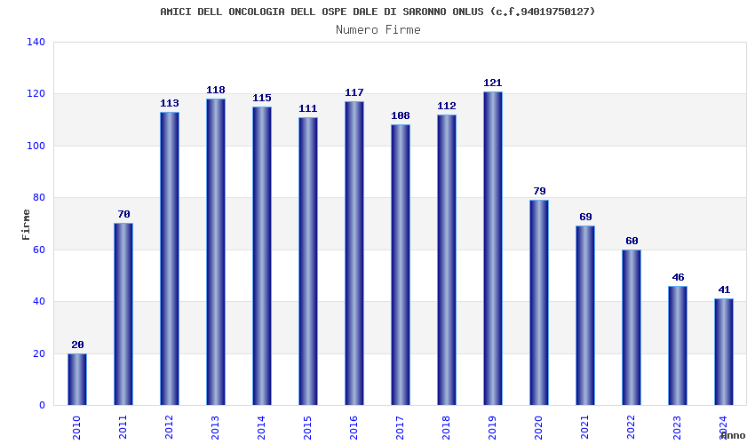 | Anno | Firme | Importi | Media | Naz. | Reg. | Prov. | Comu. |