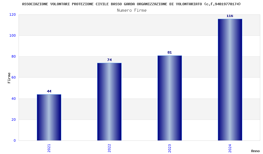 | Anno | Firme | Importi | Media | Naz. | Reg. | Prov. | Comu. |
