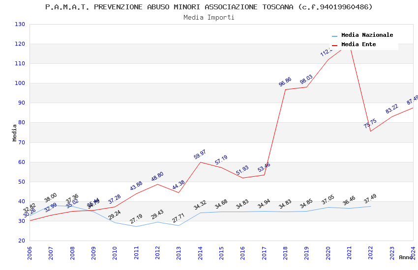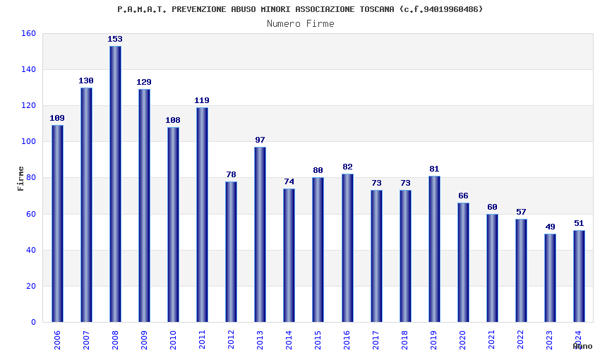 | Anno | Firme | Importi | Media | Naz. | Reg. | Prov. | Comu. |