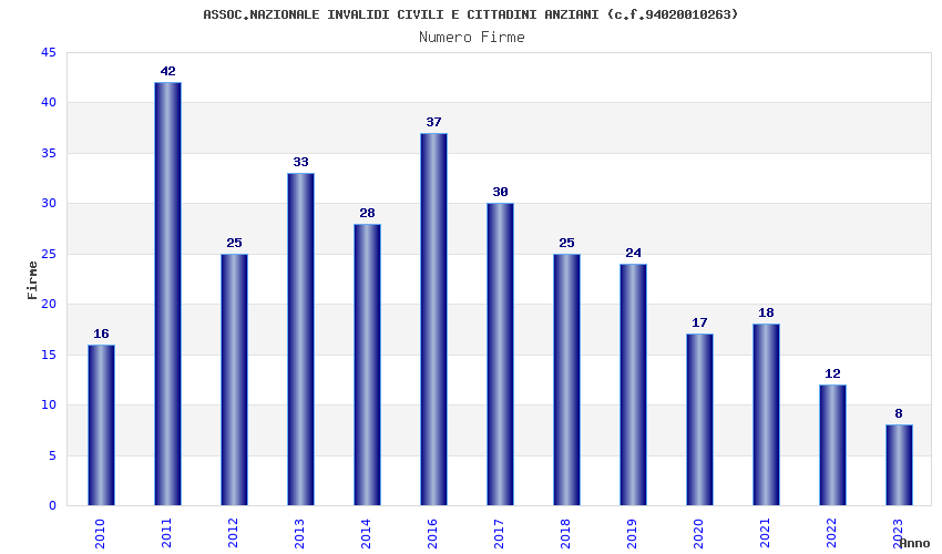 Anno Firme Importi Media Naz. Reg. Prov. Comu.