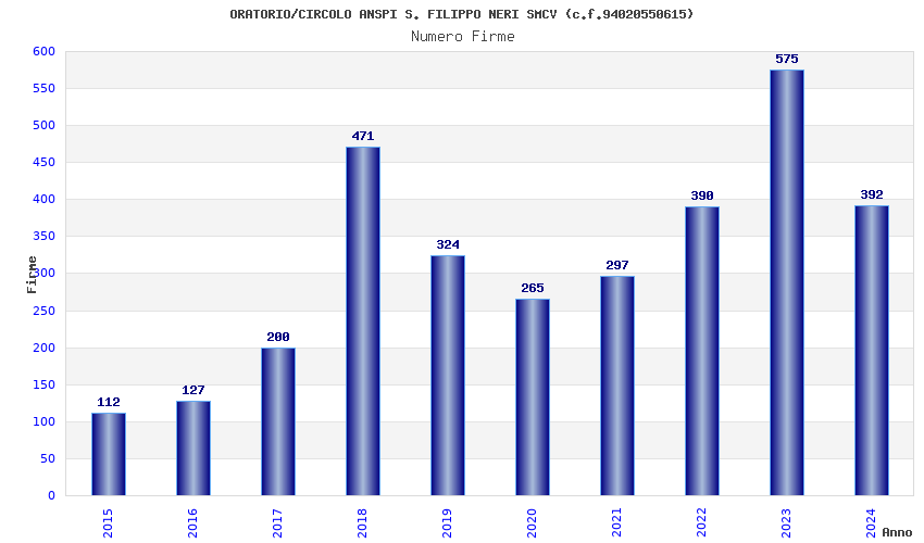 | Anno | Firme | Importi | Media | Naz. | Reg. | Prov. | Comu. |