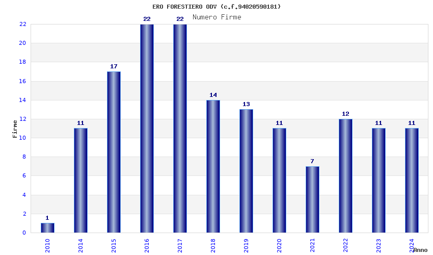 | 2017 | 22 | 640,95 | 29,13 | 40.820 | 8.637 | 453 | 54 |