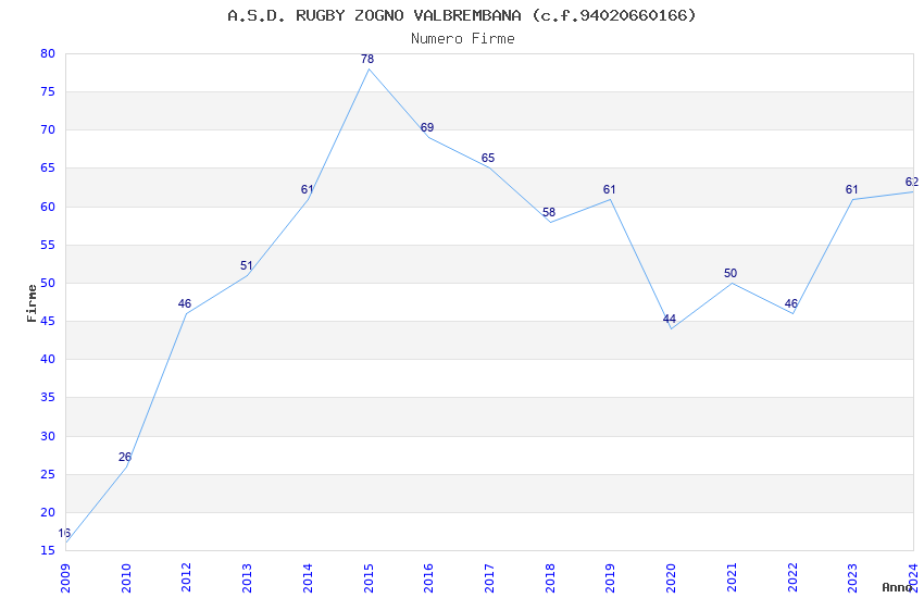 | 2023 | 61 | 2.370,65 | 38,86 | 20.856 | 4.461 | 481 | 4 |