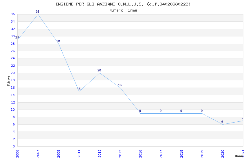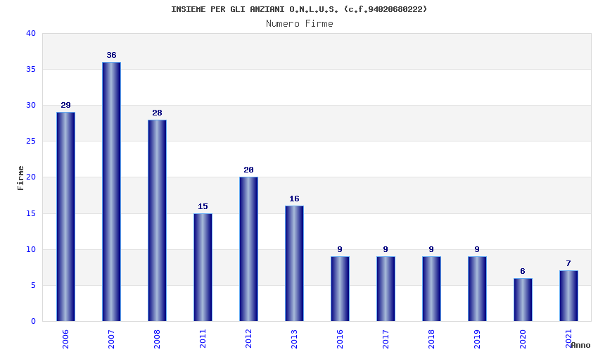 | Anno | Firme | Importi | Media | Naz. | Reg. | Prov. | Comu. |