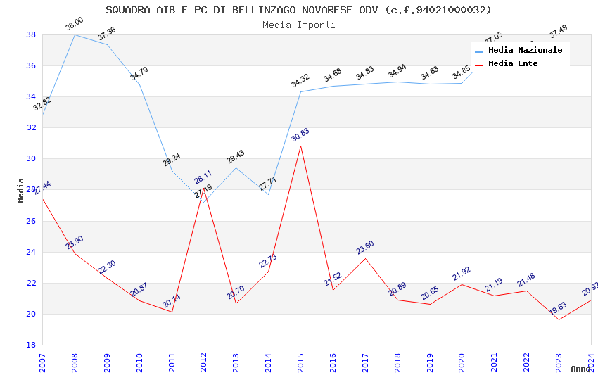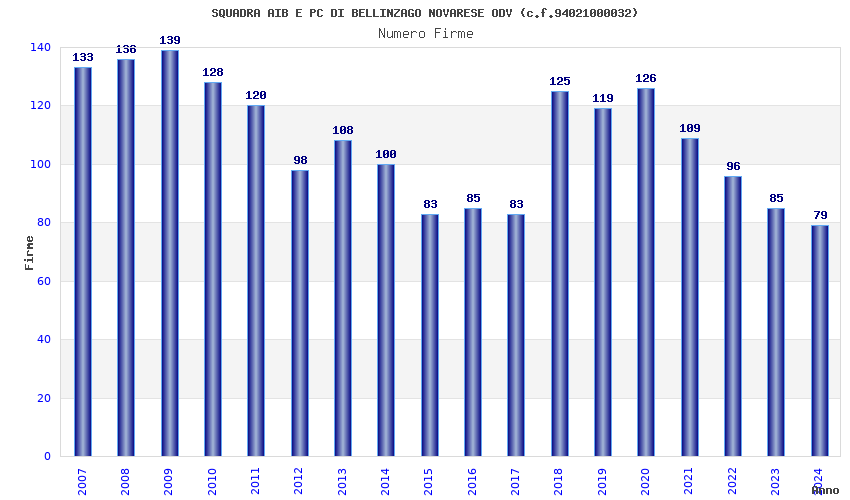 | Anno | Firme | Importi | Media | Naz. | Reg. | Prov. | Comu. |