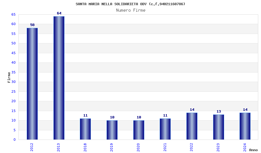 | Anno | Firme | Importi | Media | Naz. | Reg. | Prov. | Comu. |