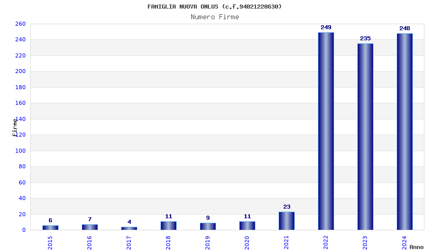 | Anno | Firme | Importi | Media | Naz. | Reg. | Prov. | Comu. |